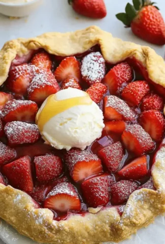 Fresh Strawberry Galette with Honey Drizzle and Ice Cream