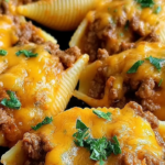 If you’re looking for a fun, flavorful, and family-friendly dinner idea, these Cheesy Taco Stuffed Pasta Shells are the perfect fusion of Mexican and Italian cuisine! This dish features jumbo pasta shells stuffed with seasoned ground beef, rich tomato sauce, melted cheese, and taco-inspired flavors, making it the ultimate comfort food for taco lovers.