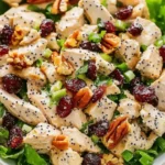 In a small bowl, whisk together the mayonnaise, Greek yogurt, honey, apple cider vinegar, poppy seeds, salt, and pepper. Taste and adjust—the dressing should be creamy with a hint of tang and sweetness. If it’s too thick, add a splash of milk. This dressing is the soul of your Chicken Salad with Poppy Seed Dressing, binding everything together magically.