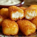 - Pour the Italian bread crumbs into the third and mix in a pinch of cayenne pepper if you like a little heat.3️⃣Bread the Cheese Bites:Roll each mozzarella piece in the flour, ensuring it’s fully coated. Then dip it into the egg mixture, letting the excess drip off. Finally, coat it evenly with the bread crumbs. Repeat this process for all the cheese pieces.4️⃣Chill:Arrange the breaded cheese bites on a tray and freeze them for at least 20-30 minutes. This step helps them hold their shape during frying.5️⃣Fry:Heat oil in a large skillet or deep fryer to 350°F (175°C). Carefully drop the cheese bites into the hot oil, frying them in small batches to avoid overcrowding. Cook for 1-2 minutes, or until golden and crispy.6️⃣Drain and Serve:Remove the fried cheese bites with a slotted spoon and place them on a paper towel-lined plate to drain excess oil. Serve immediately with marinara sauce, ranch dressing, or your favorite dip.