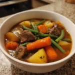 A hearty and nutritious soup made with beef and a variety of vegetables, cooked slowly in a crockpot.