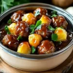 Juicy meatballs coated in a sweet and tangy pineapple barbecue sauce, slow-cooked to perfection. This easy dish is perfect for parties, potlucks, or a family dinner!