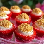 - 4️⃣Add the finishing touch:Sprinkle graham cracker crumbs over the top of each filled strawberry for a touch of crunch.5️⃣Chill and serve:Place the strawberries on a tray and refrigerate for at least 1 hour to firm up the filling. Serve chilled.
