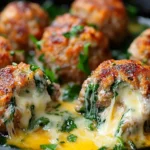 These tender turkey meatballs, packed with the flavors of spinach, garlic, and Italian spices, hide a delightful surprise—gooey melted mozzarella in the center! Perfect as a main dish with pasta or as a snack dipped in marinara, they’re sure to be a hit.