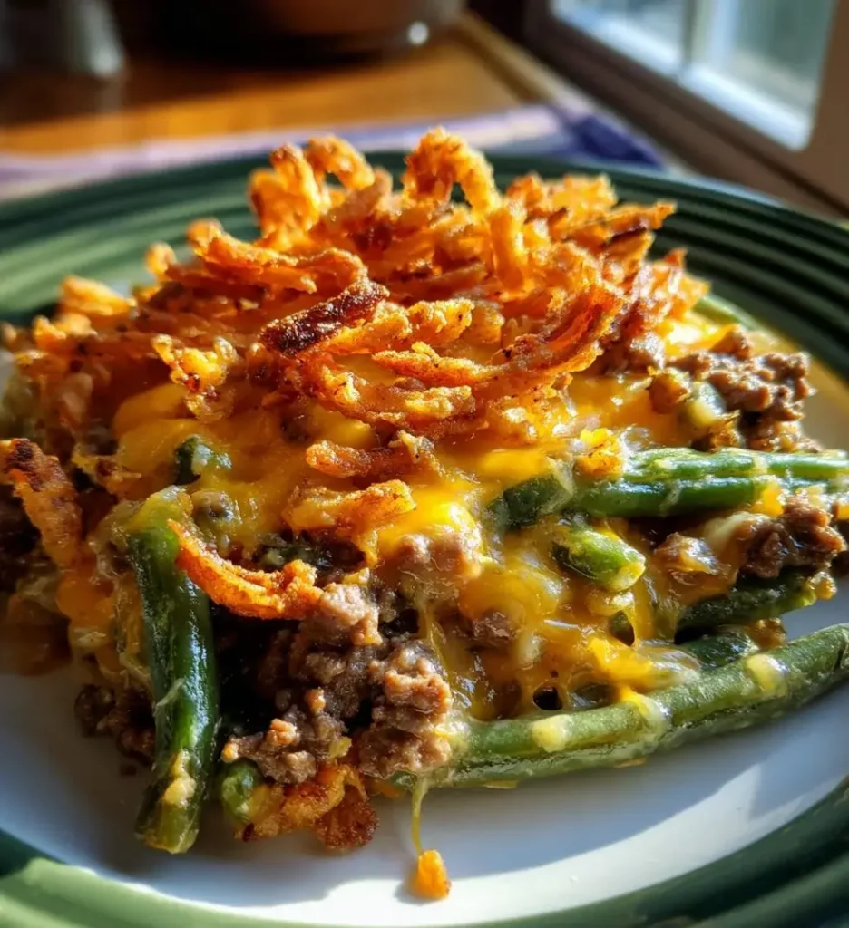 A classic dish made with green beans, cream of mushroom soup, and crispy onions.