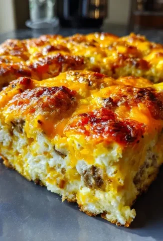 - Spread the tater tots in a greased 9×13 inch baking dish.