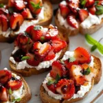 Strawberry Ricotta Crostini is a delightful combination of crunchy baguette slices topped with creamy, herb-infused ricotta and juicy, balsamic-glazed strawberries. This appetizer isn’t just tasty—it’s versatile, nutritious, and surprisingly simple to prepare. Whether you’re hosting a summer brunch, a cocktail party, or just looking for a quick weekday treat, this dish brings a touch of elegance without complexity.
