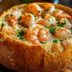 The Stuffed Seafood Bread Bowl is more than just a recipe; it’s an experience. It’s the perfect blend of satisfying carbs and luxurious seafood, all encased in a delicious, edible vessel. Whether you’re hosting a dinner party or simply craving a truly comforting meal, this dish is sure to impress. Give it a try tonight and discover your new favorite way to enjoy seafood!
